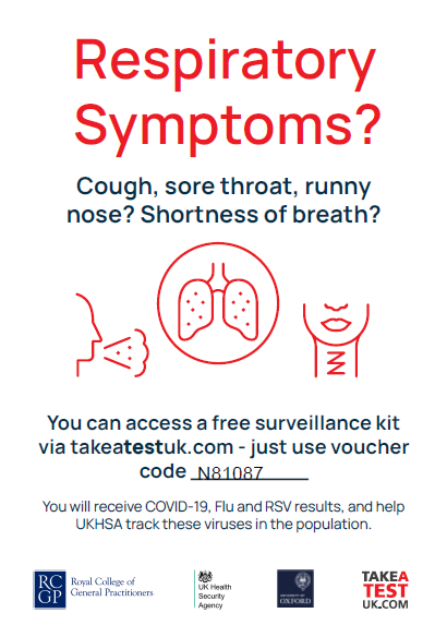 You can access a free surveillance kit via https://takeatestuk.com/ to request sampling kit without having an appointment just use voucher code N81087